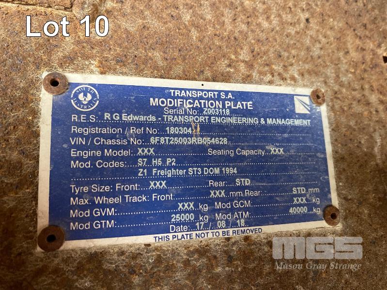 1994 FREIGHTER 40' STOCK CRATE TRI AXLE SEMI TRAILER MODEL: ST3, 4 DECK BYRNE CRATE REG: YS 31 AD VIN / CHASSIS: 6F8T25003RB054628 ATM: 40,000kg DOUBLE B RATED, AIRBAG SUSPENSION, TOOLBOX, SPARE WHEEL WATER TANK (WITH PAPERS)