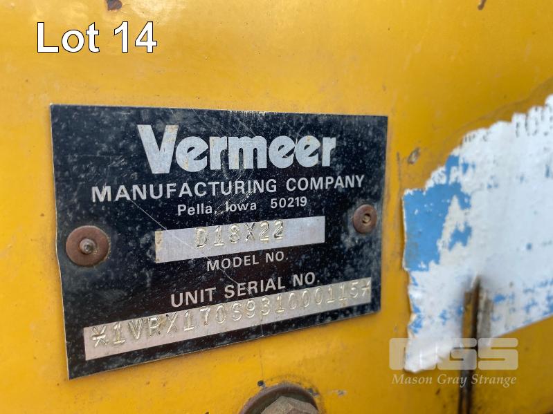VERMEER D18X22 NAVIGATOR HORIZONTAL DIRECTIONAL DRILL UNIT CATERPILLAR 4 CYLINDER DIESEL ENGINE MOD: 3054C HRS SHOWING: 2,685 S/NO: 1VRX170S931000115 TRACKED SELF PROPELLED APROX 36 x DRILL RODS CUTTING/DRILL HEAD WITH DITCH WITCH ELECTRONIC TRACKER 750 & DISPLAY IN CARRY CASES KEY #15