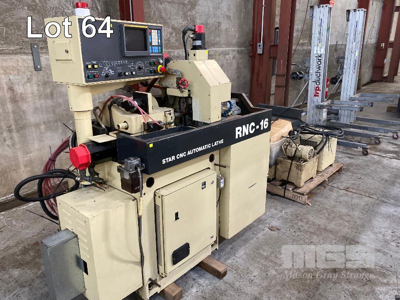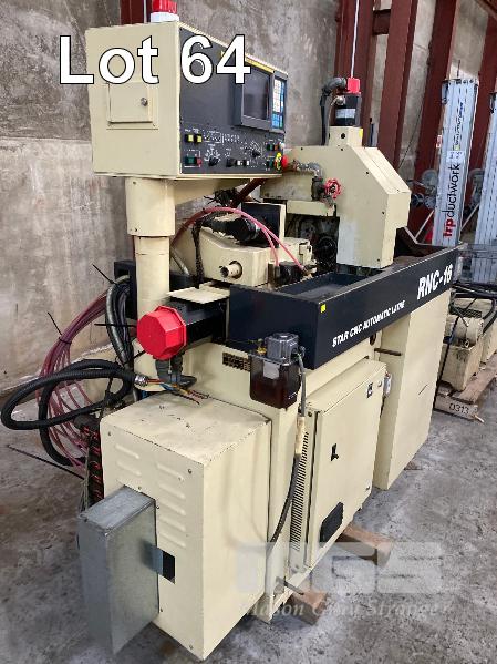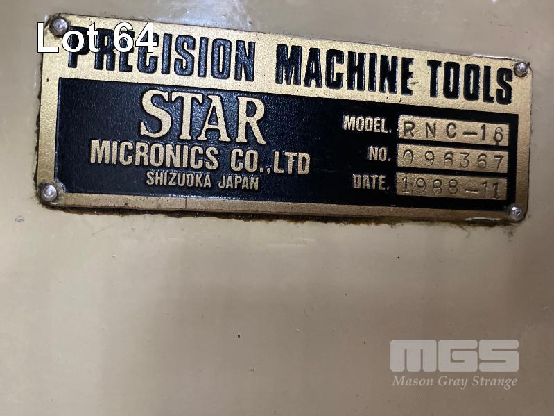 CNC AUTOMATIC LATHE, STAR MOD: RNC-16 DOM: 1988 FANUC OT CONTROL SYSTEM CAPACITY: 16mm 5 SLIDES 3 SPINDLE COMBING WITH TOOLER SETTER COLLETS, STEADY, TOOLING & AUTO BAR FEED UNIT, FMB MINI TURBO 18' (L) (6000mm) DOM: 1989 INCLUDING MANUALS, 415V