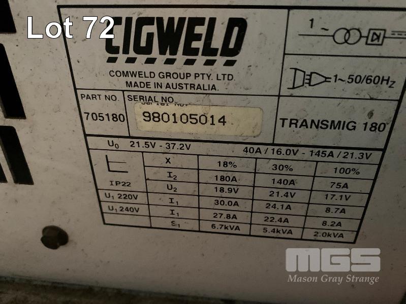 MIG WELDER, CIGWELD BRUMBY TRANSMIG 180