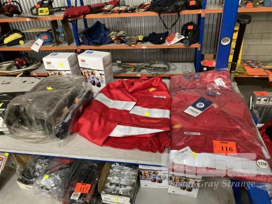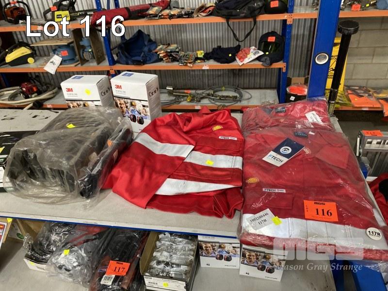 3 x PAIRS FTECH WORK OVERALLS, RED WITH REFLECTIVE TAPE,