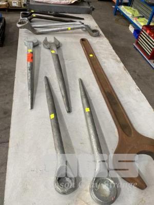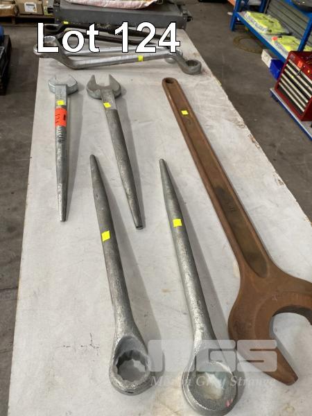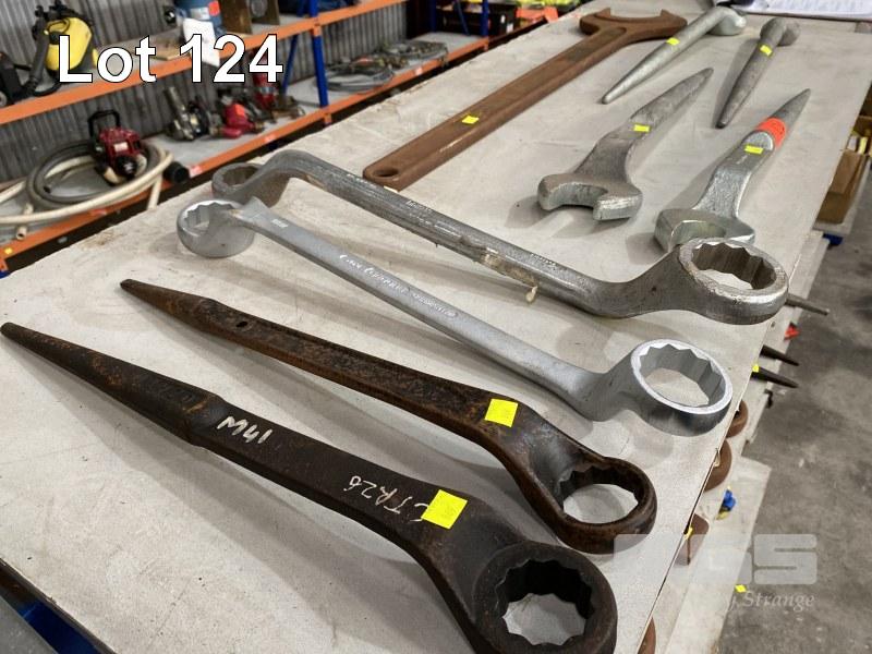 OPEN END SPANNER, 105mm, COMBINATION RING SPANNERS, 1 3/8" & 1 1/4" & 6 x POINT HANDLE OPEN & RING SPANNERS, 46, 41mm & 1 5/8", ETC