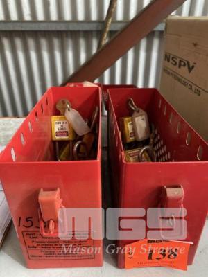 2 x ELECTRICAL LOCKOUT KITS, INCLUDING MASTER LOCK LOCK BOXES, 18 x PADLOCKS, LOCK DEVICES, ETC