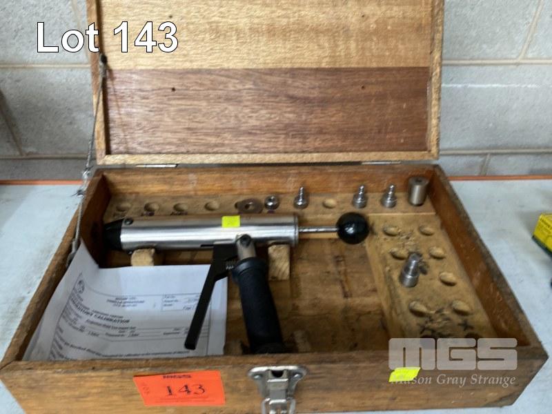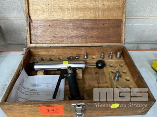 WELD TEST IMPACT GUN, HOLDEN QUALITY SYSTEMS WITH IMPACT DIES IN TIMBER CARRY BOX