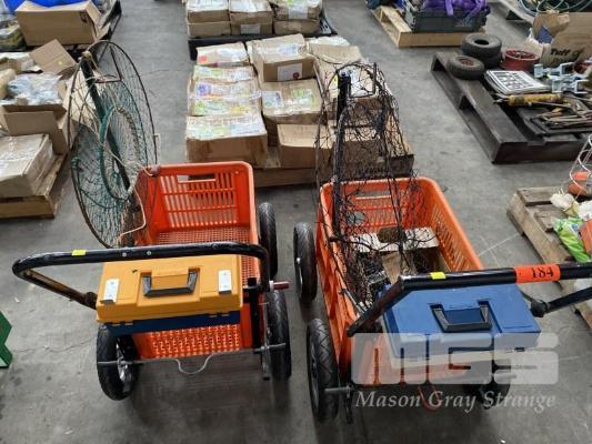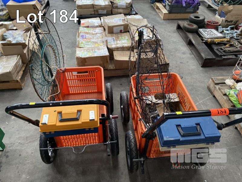 2 x FISHING/CRABBING TROLLEY WITH NETS & TACKLE BOXES