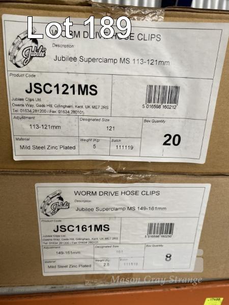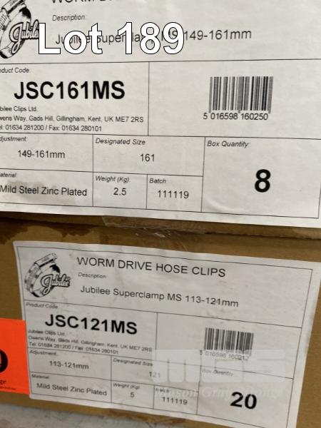 56 (APPROX) x JUBILEE WORM DRIVE HOSE CLAMPS, 4 x BOXES, 131-121mm & 149-161mm