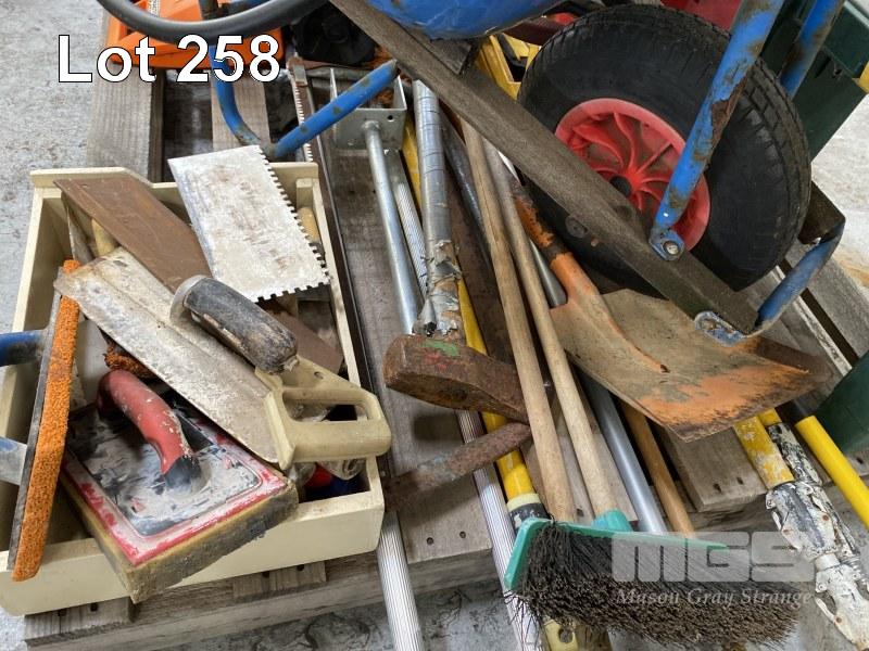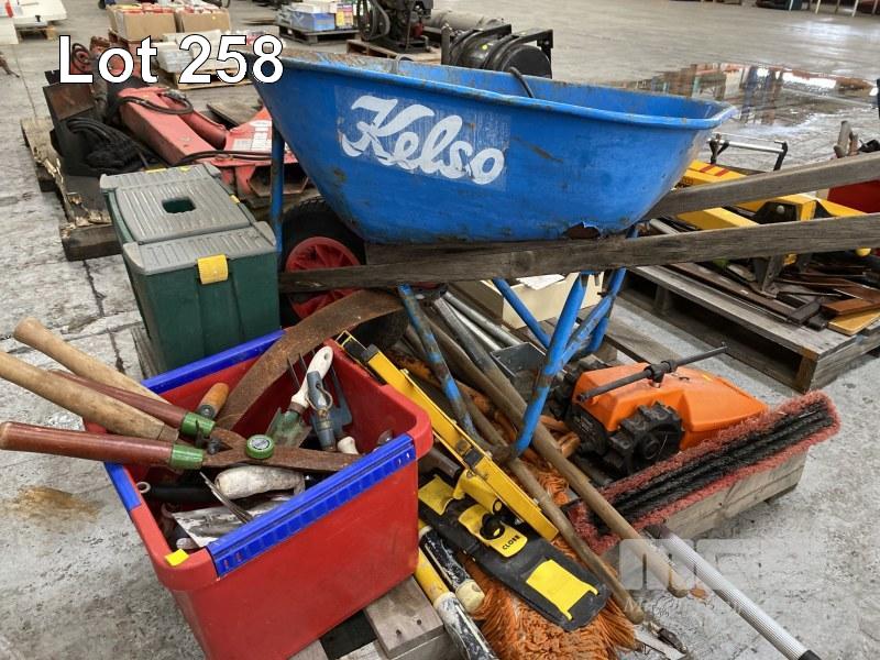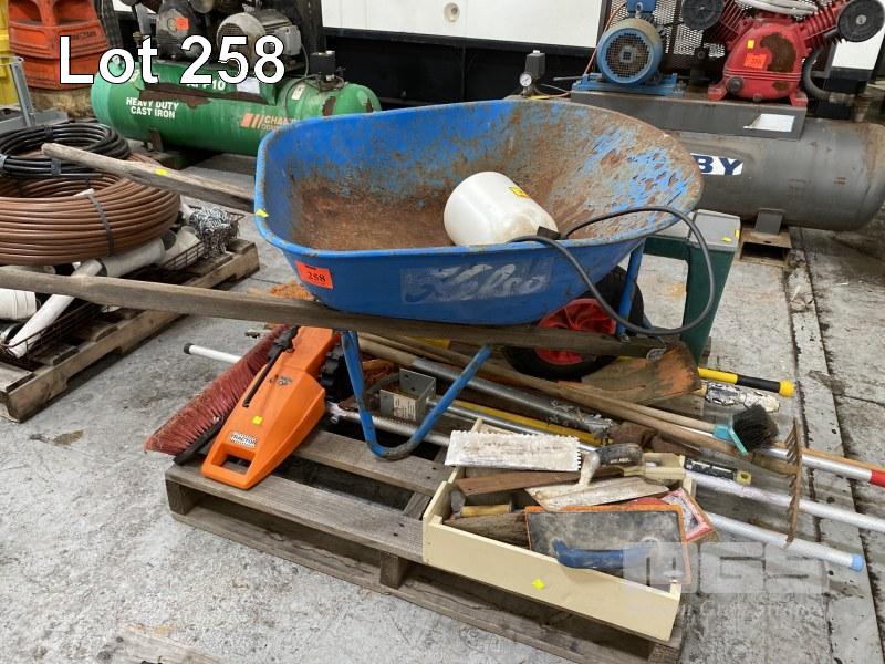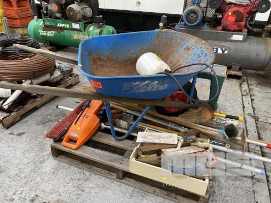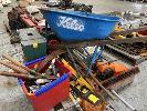 WHEELBARROW, GARDEN TOOLS, CONCRETE TOOLS, ETC