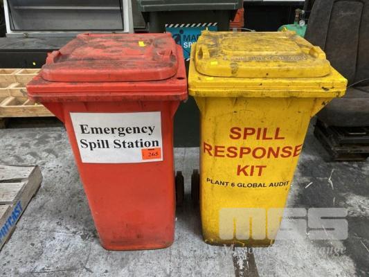 2 x SPILL KITS IN PLASTIC WHEELIE BINS, RED & YELLOW