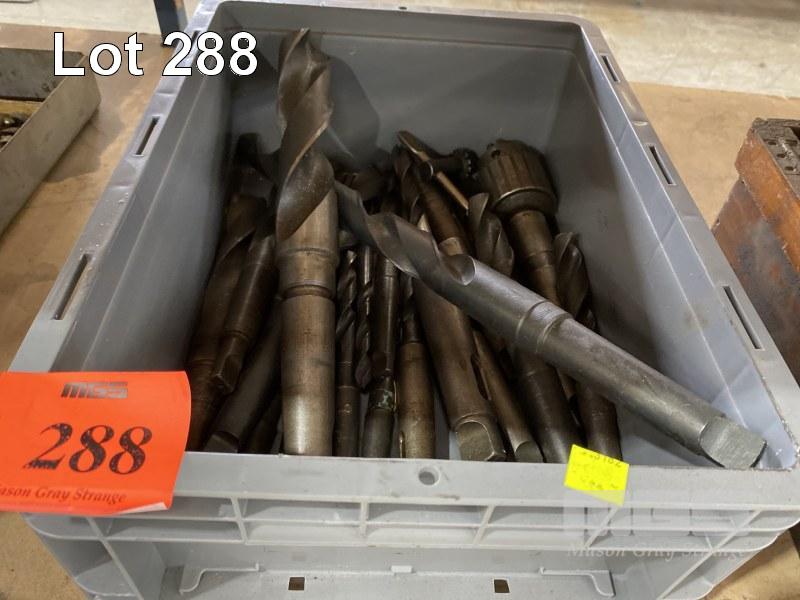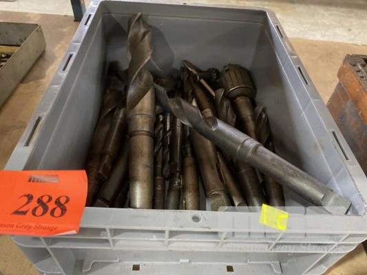 20 (APPROX) x M/T DRILL BITS, METRIC & IMPERIAL, ASSORTED SIZES 40 TO 5mm, 1 x TUB