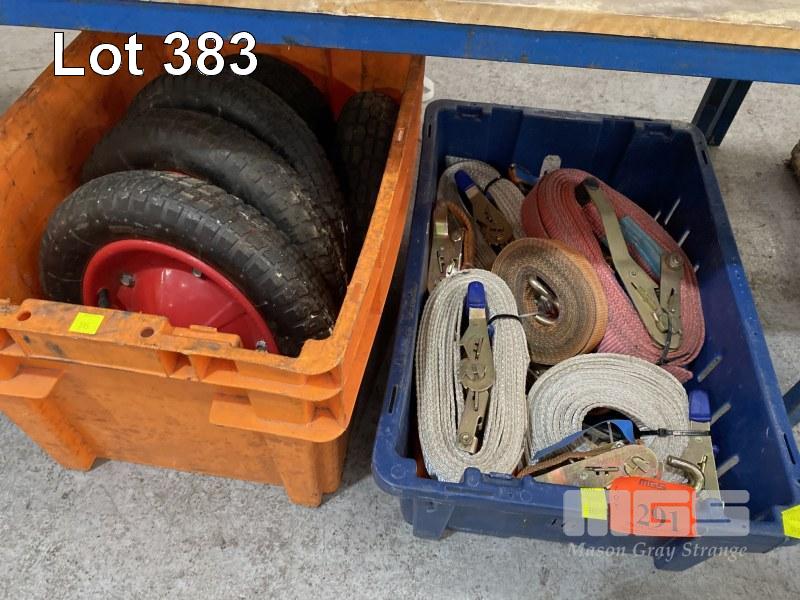 SIZES: 3.00-8 (16x3), ETC & QUANTITY RATCHET STRAPS, 2 x TUBS