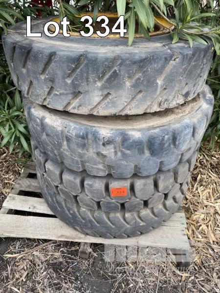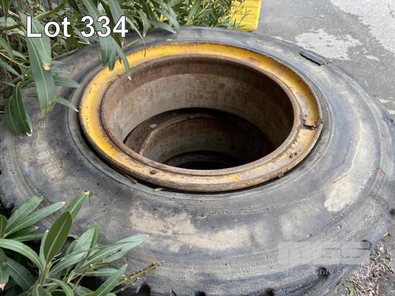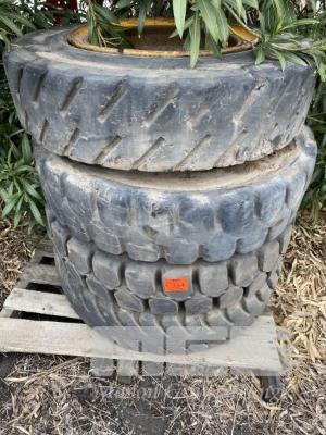 4 x TYRES & RIMS, BERGOUGNAN, 10.00-20, SOLID