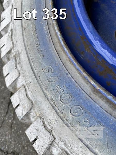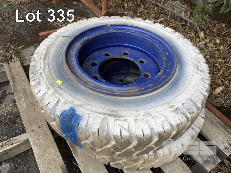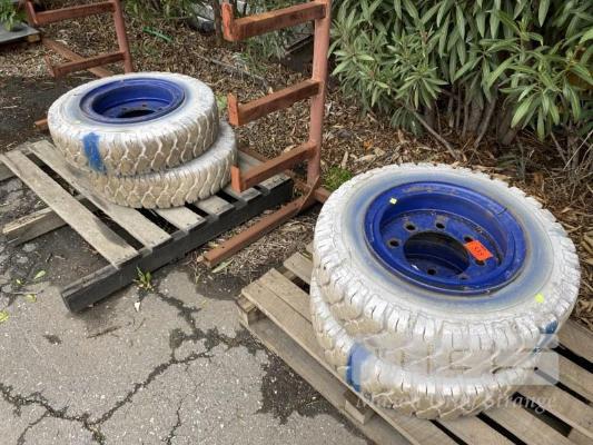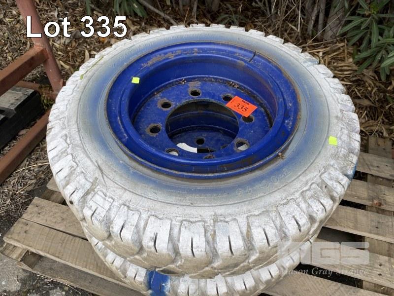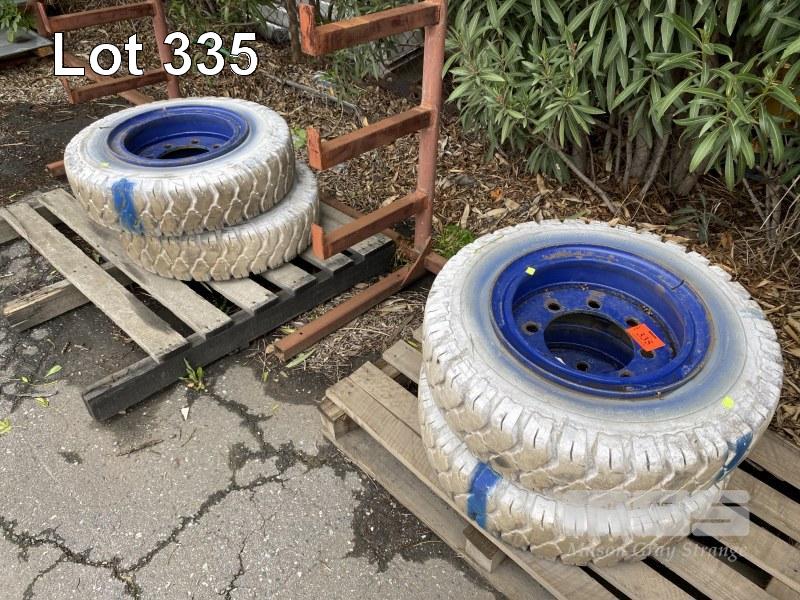 4 x TYRES & RIMS, SUIT FORKLIFT, 8 STUD, 7.00-15, SOLID
