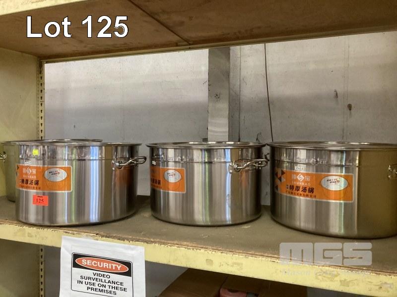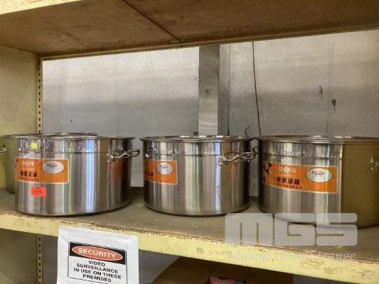 4 x STAINLESS STEEL STOCK POTS, 45cm