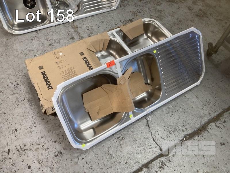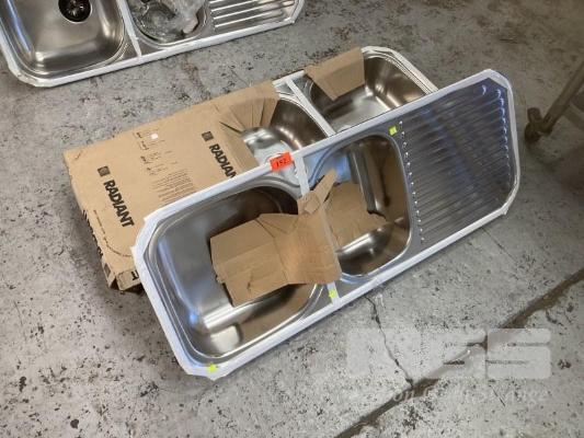 2 x STAINLESS STEEL TWIN BOWL SINKS, 123cm