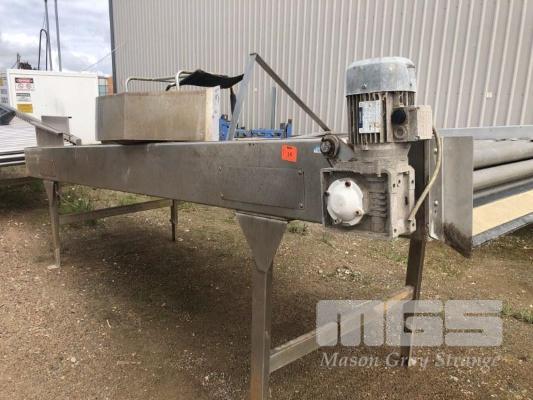 POWERED ROLLER CONVEYOR SECTION, ON LEGS, 4200 x 1250mm, ELECTRIC MOTOR, NON MAGNETIC STAINLESS STEEL CONSTRUCTION