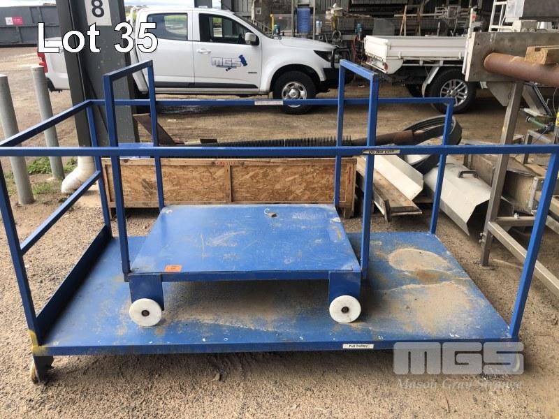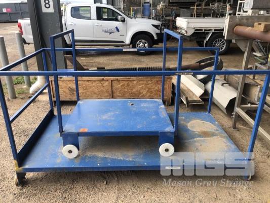 2 x STEEL STOCK TROLLEYS, 2200 x 1100mm, 1100 x 860mm