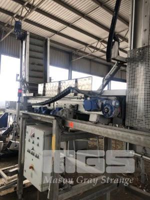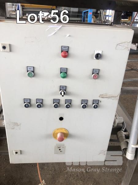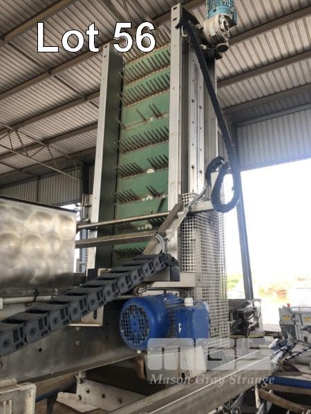 GILLENKRICH PACKAGING SYSTEMS CONVEYOR SYSTEM, 2400 x 450mm BELT WITH 2 x PRODUCE ELEVATING UNITS, 1800mm RISE WITH CONTROL PANEL, DRIVES & MOTORS