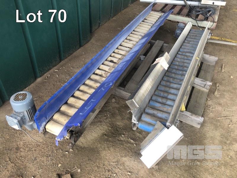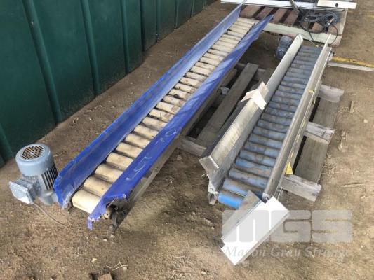 2 x CONVEYOR SECTIONS WITH MOTORS & DRIVES, 2200 x 200mm, 1900 x 200mm