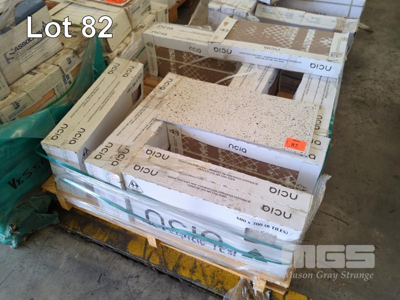FLOOR TILES "NCIA PROMENADO" 600 X 300 MM WHITE TEXT - 15 X BOXES OF 8 TILES EACH, 22 M2 APPROX. (2 X PALLETS)