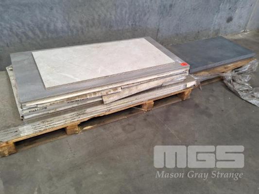 ASSORTED LARGE TILES - 600 X 1200 MM TO 800 X 1800 MM. MOST GREY, VARIOUS TEXTURES (2 X PALLETS)