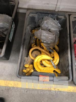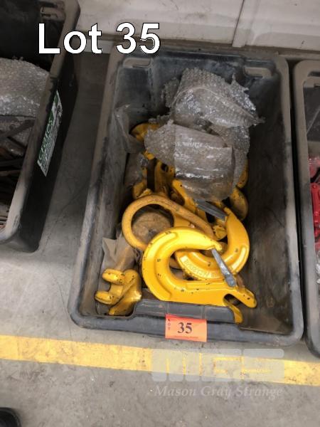 TUB OF ASSORTED LIFTING HOOKS, CHAIN SHORTENERS, APPROX 20 PIECES