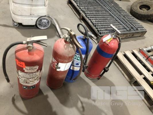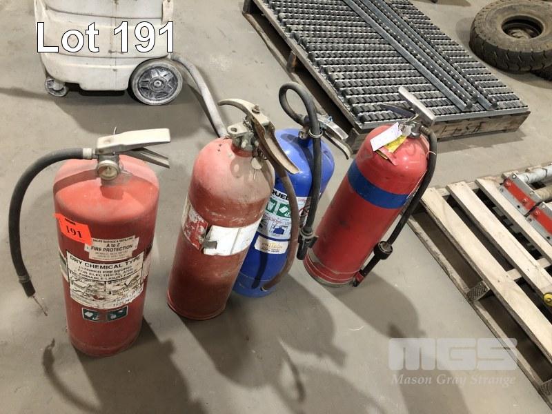 4 x FIRE EXTINGUISHERS, 9kg, 3 x POWDER, 1 x LIQUID, 3A-30B