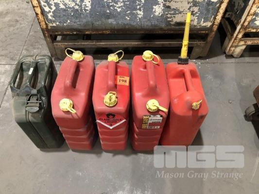 5 x 20L JERRY CANS, 4 x PLASTIC, 1 x STEEL