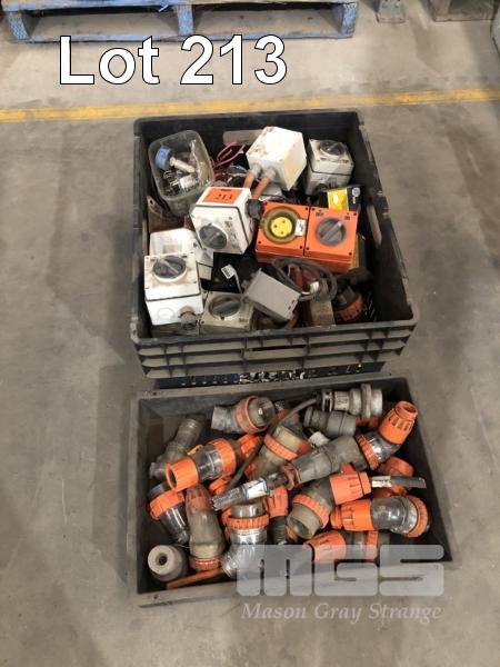 2 x TUBS 415v SWITCHES, PLUG BASES, PLUGS, SPEED CONTROLLER, RELAYS, ELECTRICAL COMPONENTS, ETC.