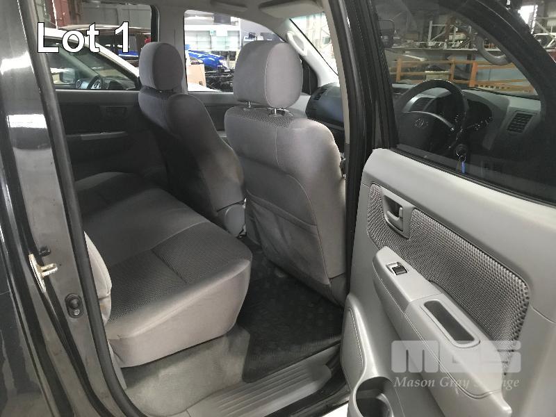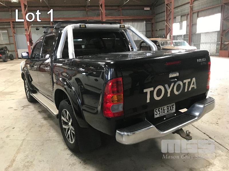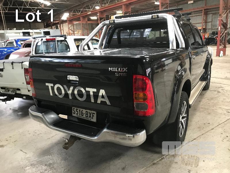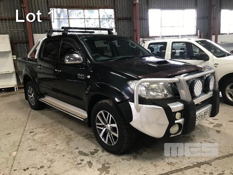 2011 TOYOTA HILUX SR5 DUEL CAB UTILITY 4x4 REG: S516 BXF (SA) VIN: MR0FZ29G001622556 ENG: 1KD5342932 ODO: 193,514kms SHOWING 3.0 LITRE TURBO DIESEL, 4 SPEED AUTOMATIC TRANSMISSION, BLACK DUCO, 4 DOORS, 5 SEAT, 4x4 ABS, AIR BAG, AIR CON, ALLOY WHEELS, BLUETOOTH, BULL BAR, CD PLAYER, CENTRAL LOCKING, CRUISE CONTROL, FOG LAMPS, IMMOBILISER, POWER STEERING, POWER WINDOWS, ROOF RACKS, SIDE STEP, SPARE WHEEL, TOW BAR, TRACTION CONTROL, AFTER MARKET REVERSING CAMERA, HARD TONNEAU COVER, BONNET & WINDOW GUARDS (FRONT) KEY #2 (WITH PAPERS, WITH 1 KEY/S, WITH OWNER'S MANUAL, WITH SERVICE BOOKS)