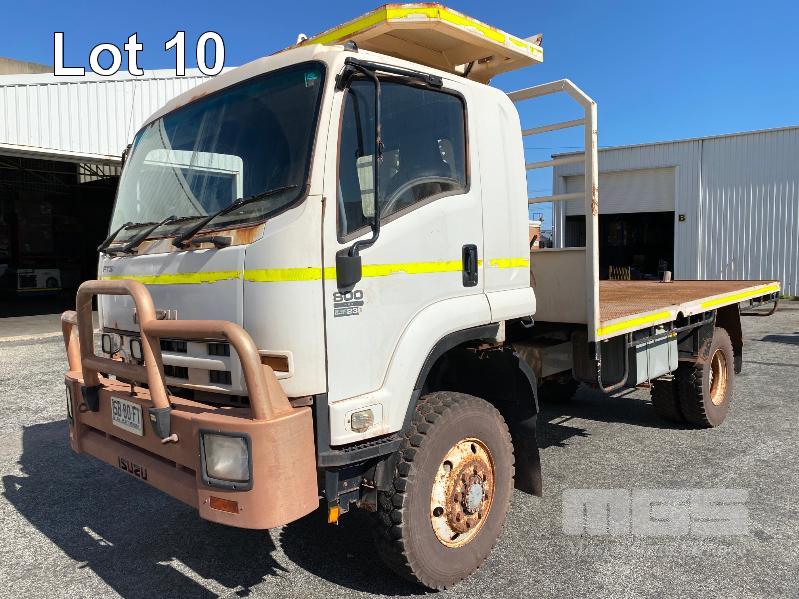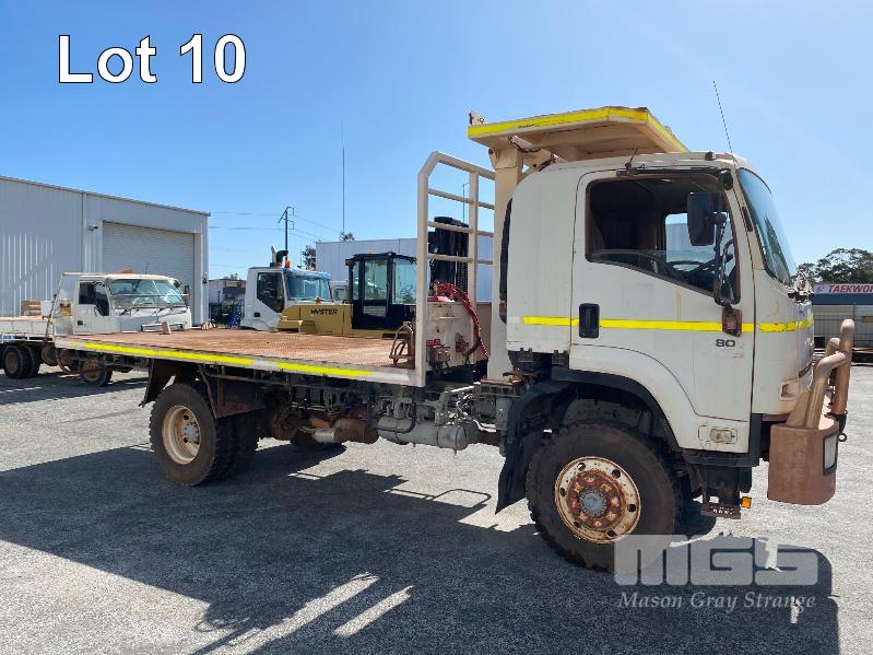 2012 ISUZU FH FTS800 4x4 TRAYTOP TRUCK REG: SB 80 FT (SA) VIN: JALFTS34LB7000330 ODO: 40,466kms SHOWING GVM: 13,900kg SITEC 235 SERIES III, 6 SPEED MANUAL TRANSMISSION, TURBO DIESEL, SPRING SUSPENSION, WHITE DUCO, 11R22.5 2 DOORS, 3 SEAT, AIR CON, BULL BAR, CHECKER PLATE STEEL TRAY ROPS PROTECTION FIRE SUPPRESSION SYSTEM ISOLATION SWITCHES HAZARD & SPOT LIGHTS TRAY SIZE: 5000 x 2500mm KEY #11 (WITH 1 KEY/S)