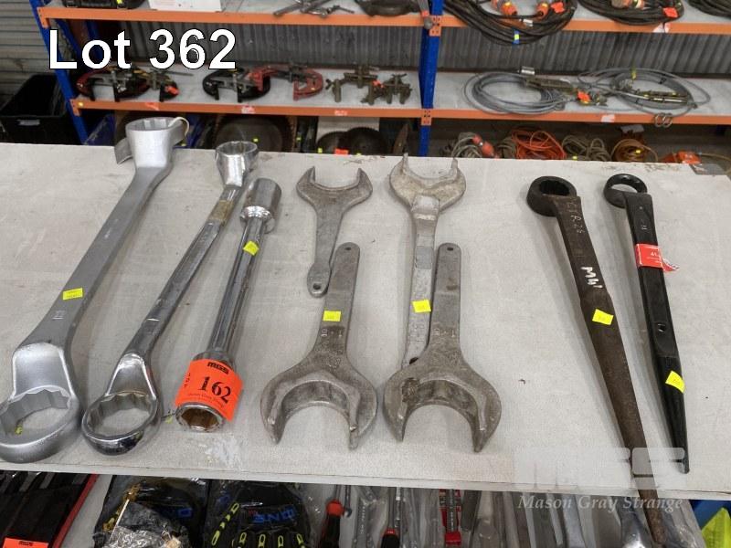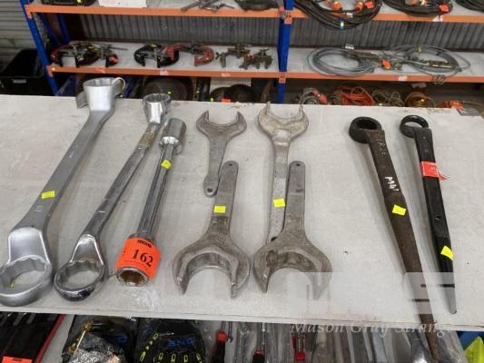 2 x RING SPANNERS, 60 & 55mm & 1 1/8" & 1 1/4", SOCKET BAR, 1/4" & 15/16", POINT HANDLE RING SPANNERS, 1 5/8" & 41mm