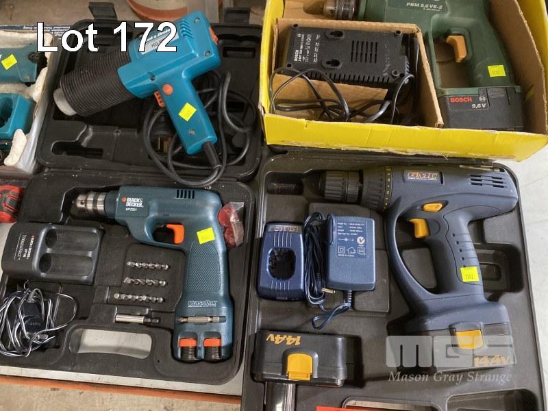 5 x CORDLESS DRILLS & DRIVERS INC OZITO X POWER, B&D VERSA PAK, B&D HEAT GUN, GMC, BOSCH, ETC
