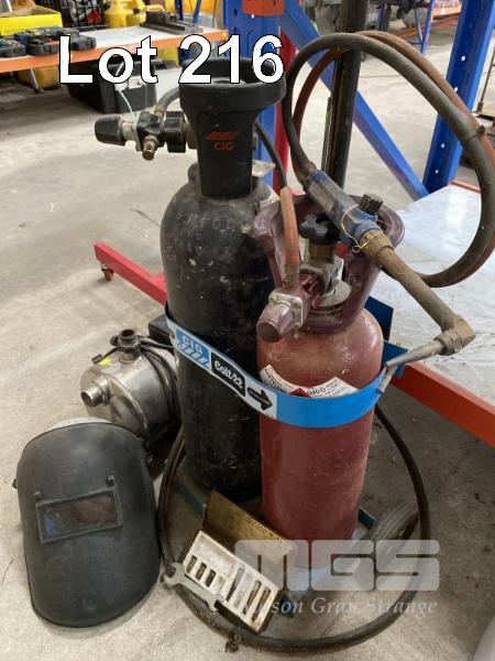 COLT 22 OXY ACETYLENE SET, TROLLEY, REGS, HOSE, TORCH, BOTTLES & TIPS, WITH WATER PUMP, 240V