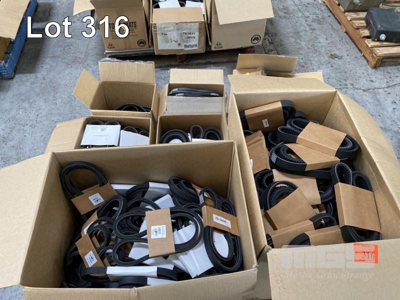 LARGE QUANTITY ASSORTED NEW FAN & DRIVE BELTS, TOTAL PARTS, 7 x BOXES
