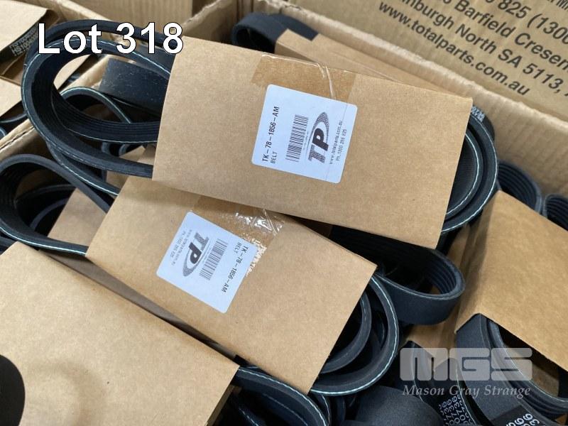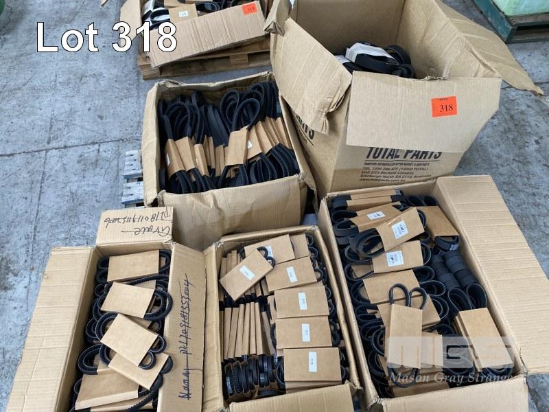 LARGE QUANTITY ASSORTED NEW FAN & DRIVE BELTS, TOTAL PARTS, 5 x BOXES