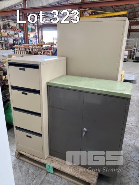 2 x 2 DOOR STEEL CABINETS, 180 & 90cm, 4 DRAWER FILING CABINET & SMALL SINGLE DOOR TOOL CABINET,