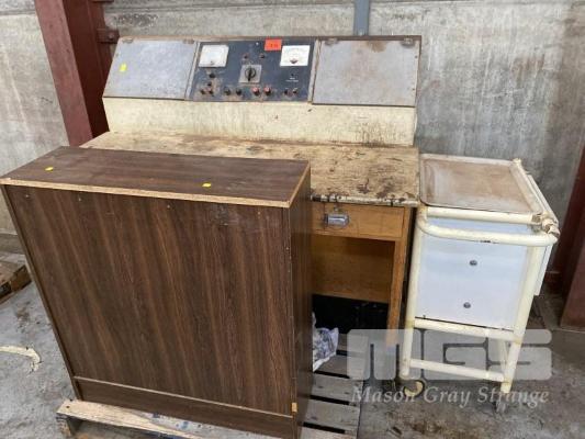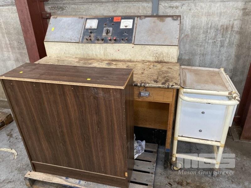 ELECTRICAL TEST BENCH, 1400 x 800 x 900mm (H), SHELF UNIT & WORKSHOP TROLLEY CABINET