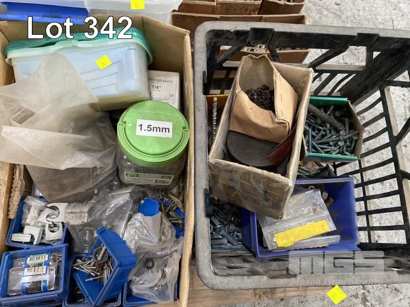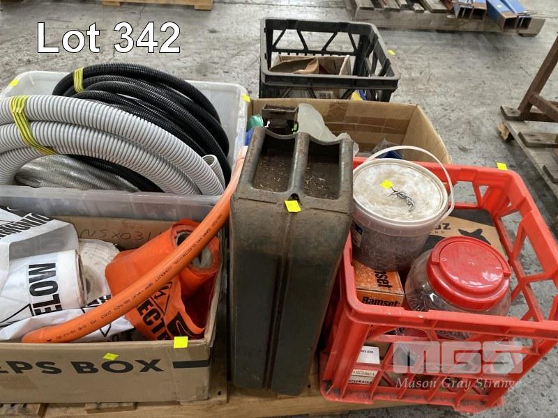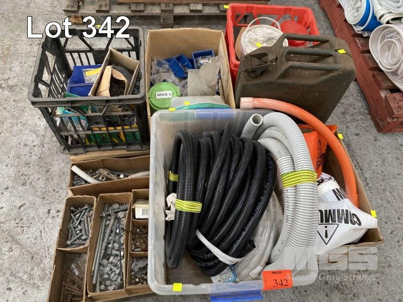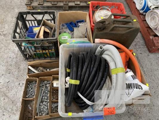 ASSORTED FASTENERS, CHAIN, WASHERS, FLEXIBLE CONDUIT, 20 LITRE JERRY CAN, ETC