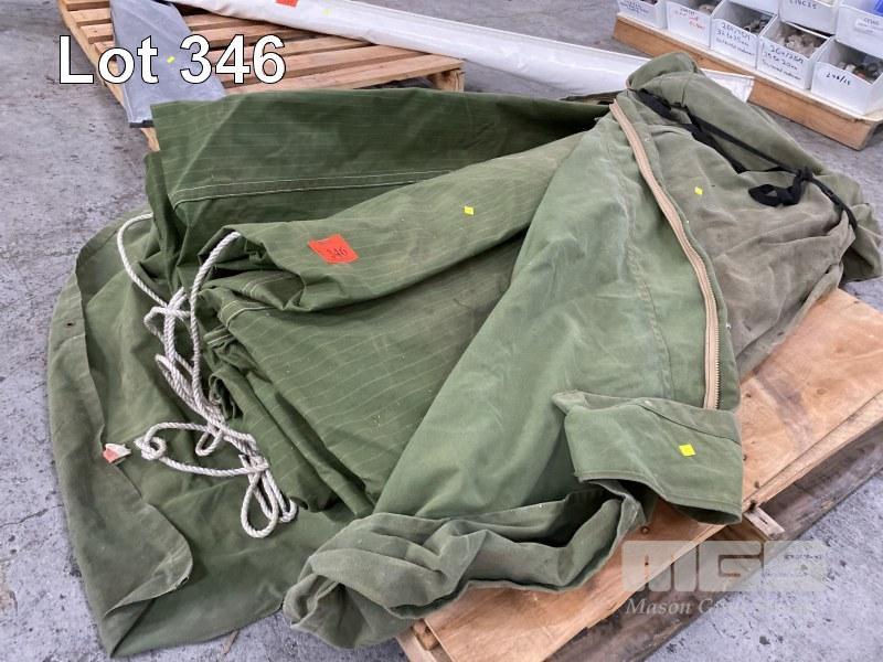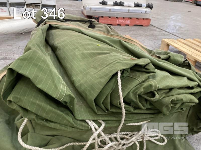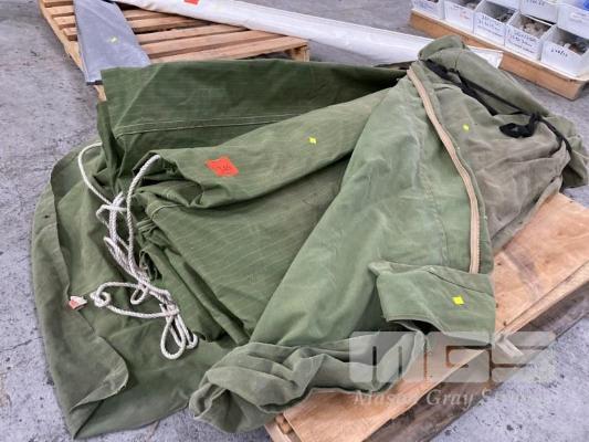 CANVAS TARP, GREEN, VERY LARGE, IN GOOD CONDITION, WITH PROTECTIVE BAG
