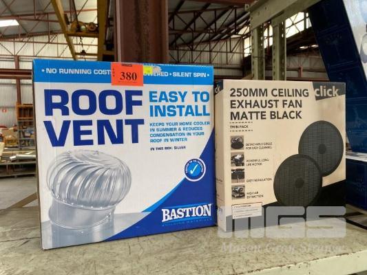 ROTARY ROOF VENTS, BASTION & 2 x 250mm CEILING FANS, NEW IN BOXES