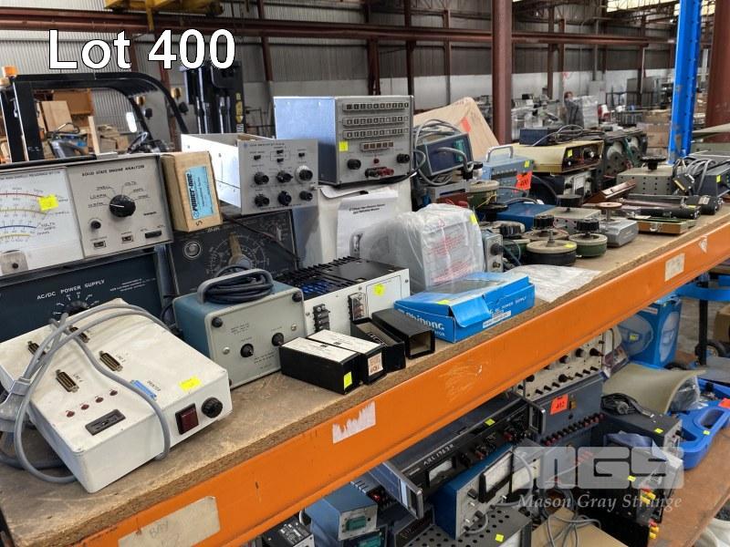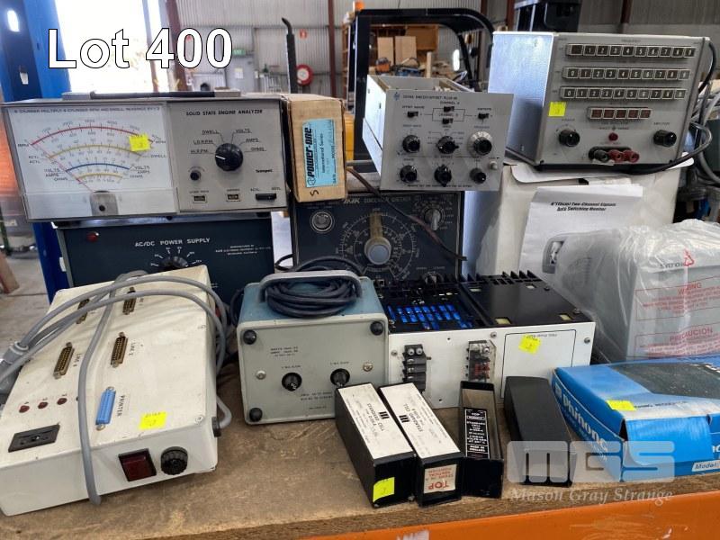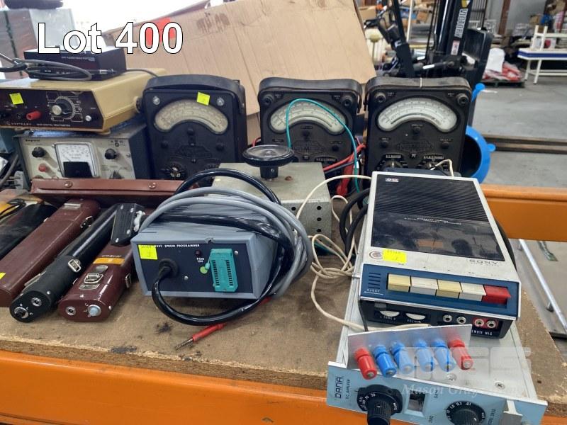 ELECTRONICS ENGINEERING EQUIPMENT, SOME VINTAGE INCLUDING UNIVERSAL AVO METERS, EPROM PROGRAMMERS, DIGITAL MULTIMETERS, HEWLETT & PACKARD OSCILLATOR, ANALIZERS, CHECKERS, DIAL CONTROLS, ETC, 1 x SHELF