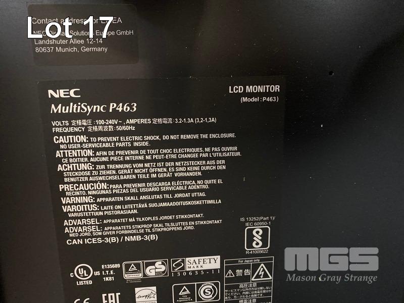 MONITOR, NEC MULTISYNC P463 46" COMMERCIAL LCD DISPLAY, WITH BUILT-IN PC MODULE, CORE i5 4400E @ 2.7GHz, 4GB RAM, 128GB SSD (NO REMOTE, NO STAND) S/N:65113283NB