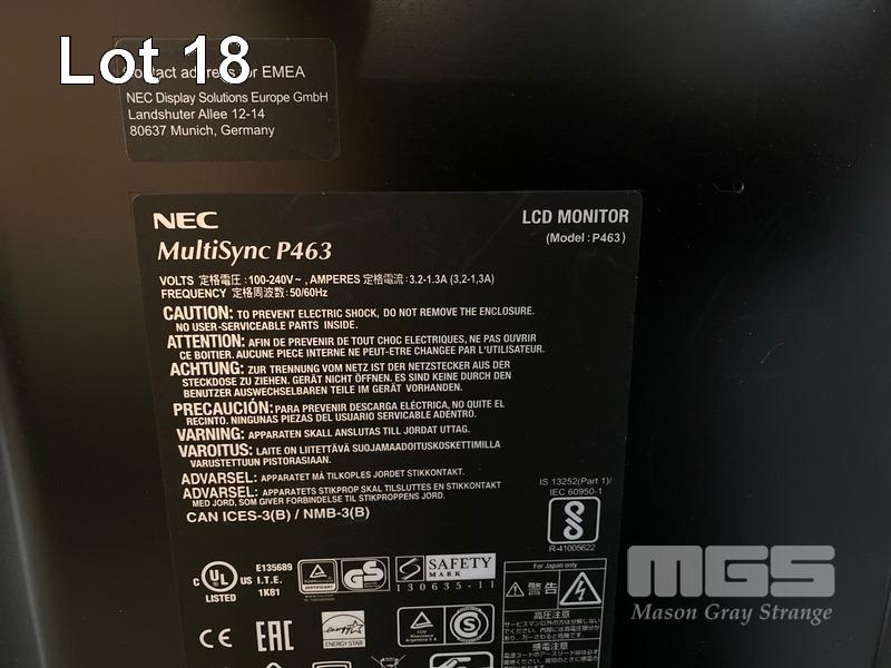 MONITOR, NEC MULTISYNC P463 46" COMMERCIAL LCD DISPLAY, WITH BUILT-IN PC MODULE, CORE i5 4400E @ 2.7GHz, 4GB RAM, 128GB SSD (NO REMOTE, NO STAND) S/N:65113393NB
