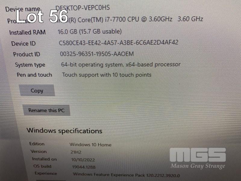 ALL-IN-ONE PC, DELL OPTIPLEX 7450, CORE i7 7700 (7TH GEN) @ 3.6GHz, 16GB DDR4 RAM, 512GB SSD, INBUILT 23.8" FHD TOUCHSCREEN (1920x1080), INTEL HD GRAPHICS, WEBCAM, 7 x USB, 1 x USB-C, WINDOWS 10 HOME INSTALLED, KEYBOARD & MOUSE S/N:DJSP6Q2