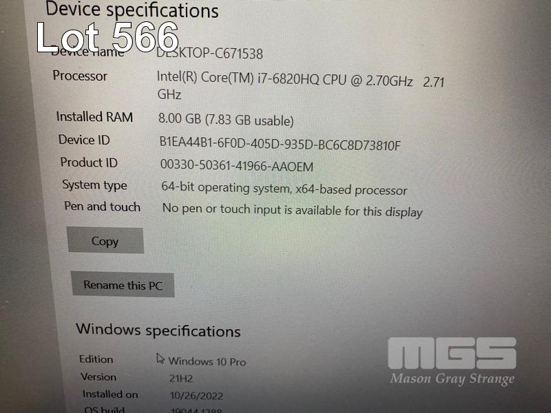 LAPTOP, LENOVO THINKPAD P50 MOBILE WORKSTATION, TYPE 20EQ, CORE i7 6820HQ (6TH GEN) @ 2.7GHz, 8GB DDR4 RAM, 512GB NVMe M.2 SSD, 15.6" WIDESCREEN (1920x1080), 4GB NVIDIA QUADRO M2000M VIDEO, Wi-Fi, BLUETOOTH, WINDOWS 10 PRO INSTALLED, DOCKING STATION & POWER SUPPLY (NOTE: MINOR MARKS ON SCREEN) S/N:PC0HW66D