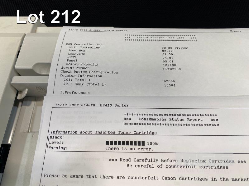 PRINTER, CANON imageCLASS MF419x MFC LASER, ADF, USB, NETWORK, FAX, 52,555 PAGES (TEST PAGE ATTACHED) S/N:URT02268