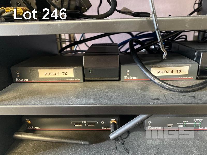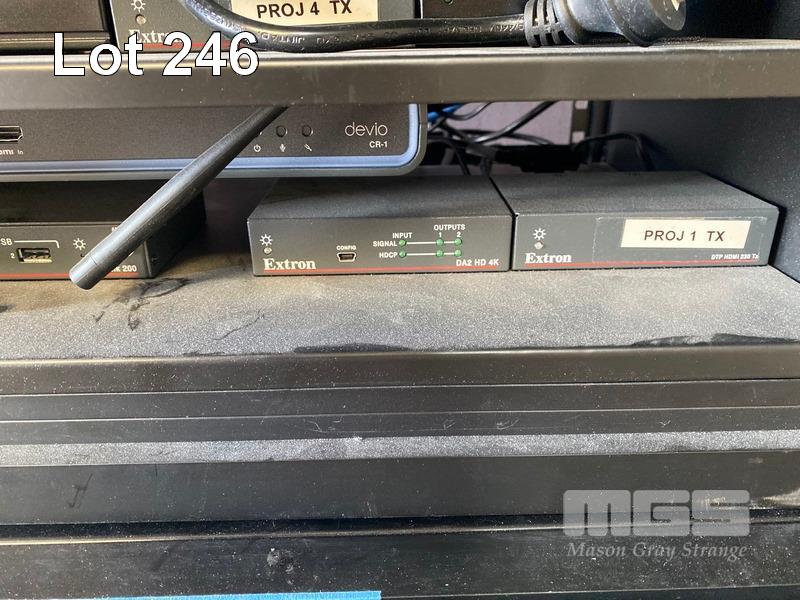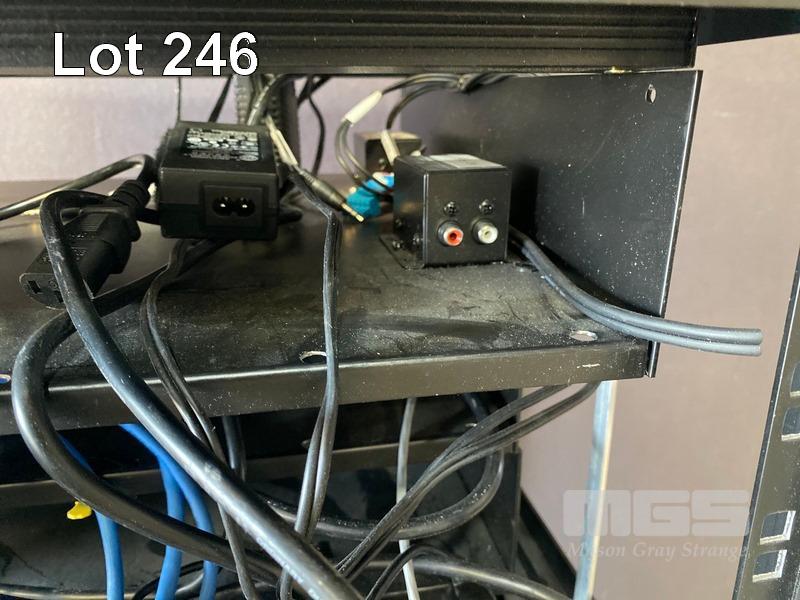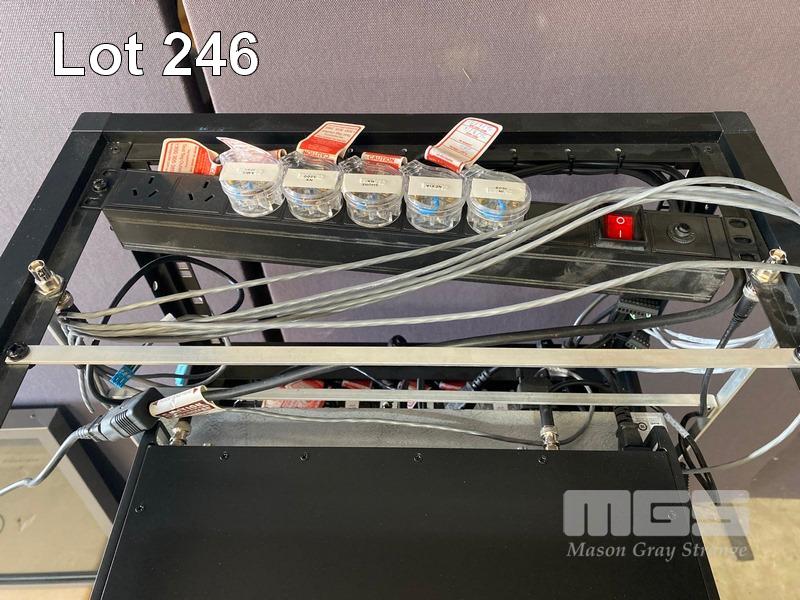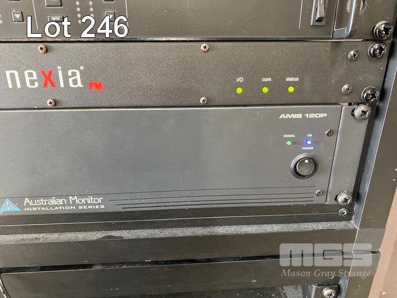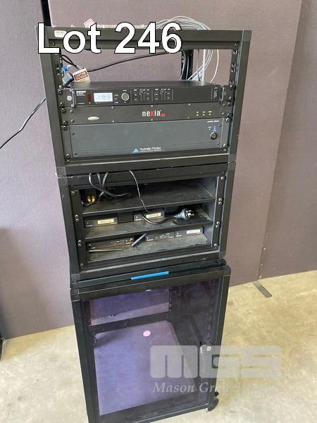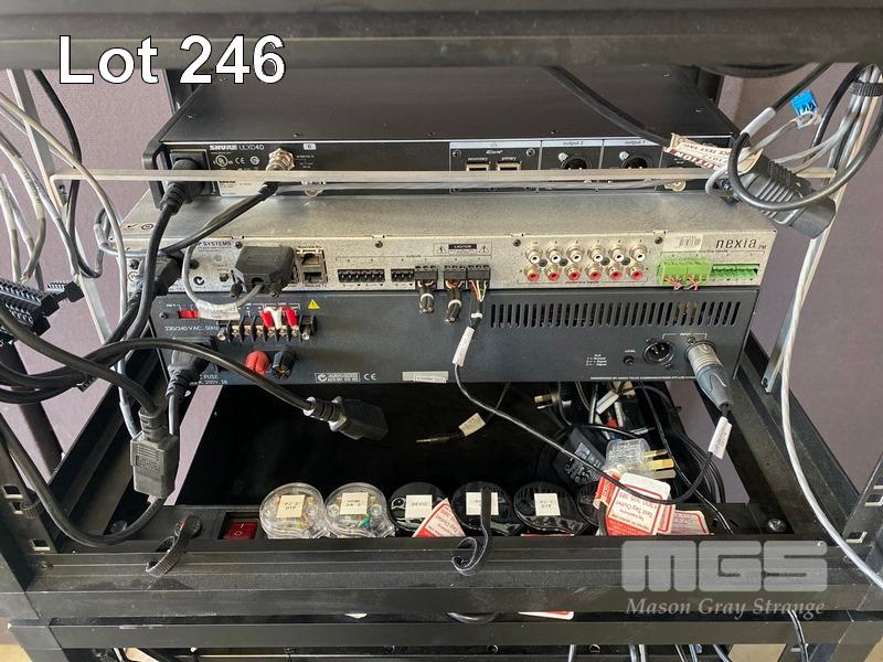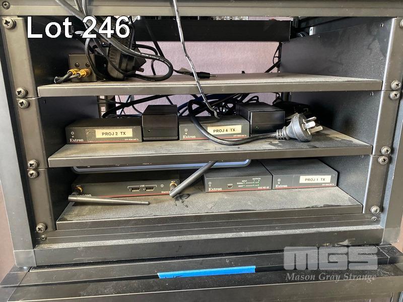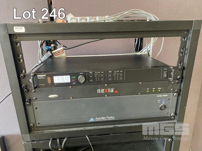 1 x DATA RACK CABINET, 15U, MOBILE (NO KEYS) 2 x DATA RACK FRAMES, 6U & CONTENTS INCLUDING SHURE ULXD4D DIGITAL WIRELESS RECEIVER, L51 632-696MHz NEXIA PM BIAMP PRESENTATION MIXER AUSTRALIAN MONITOR INSTALLATION SERIES AMIS 120P AMPLIFIER 3 x EXTRON DTP HDMI 230 Tx, 1 x EXTRON DA2 HD 4K, 1 x EXTRON SHARELINK DEVIO CR-1 CONFERENCING HUB 2 x 8-WAY POWERBOARDS (PDU)