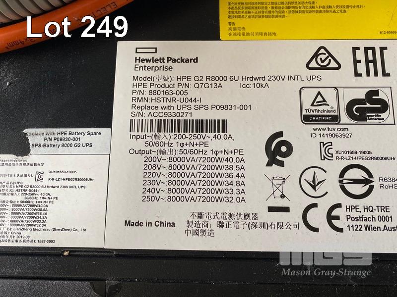 RACKMOUNT UPS, HPE R8000 G2, 8kVA, 7.2kW, 6U, MODEL Q7G13A, 32A CONNECTION WITH 2 x HPE PDU, P9Q45A S/N:ACC9330271
