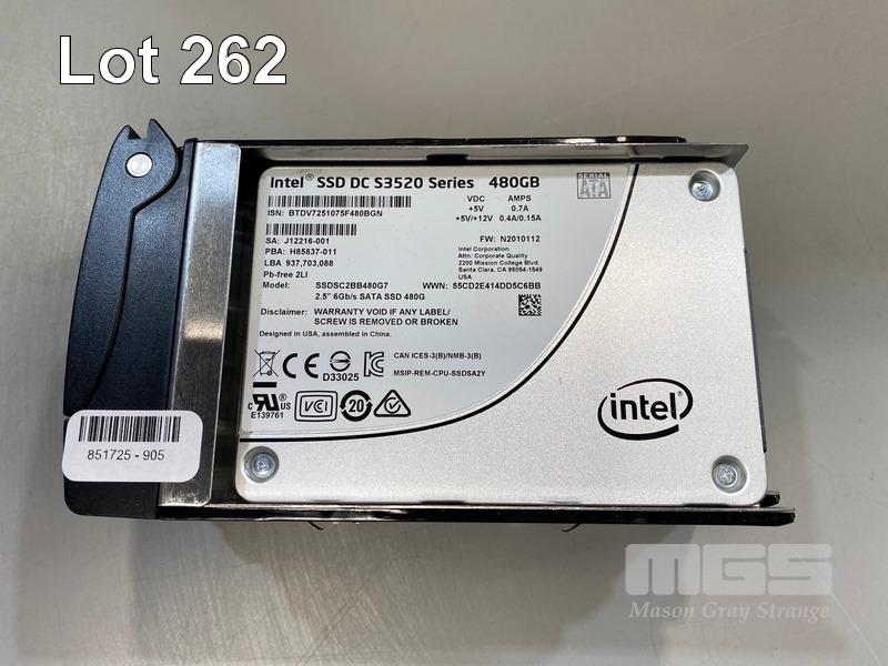 4 x INTEL 480GB SOLID STATE DRIVES, DC S3520 SERIES, SATA, 2.5" WITH CADDIES