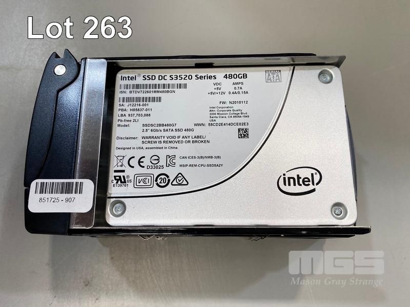 4 x INTEL 480GB SOLID STATE DRIVES, DC S3520 SERIES, SATA, 2.5" WITH CADDIES
